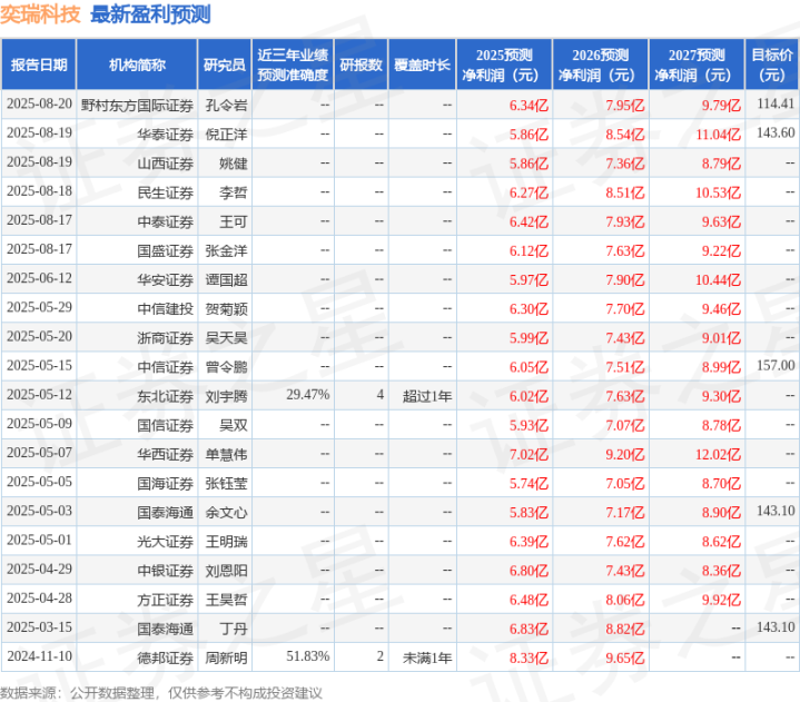 证券之星数据中心根据近三年发布的研报数据计算,德邦证券周新明研究员团队对该股研究较为深入,近三年预测准确度均值为51.83%,其预测2025年度归属净利润为盈利8.33亿,根据现价换算的预测PE为19.13。